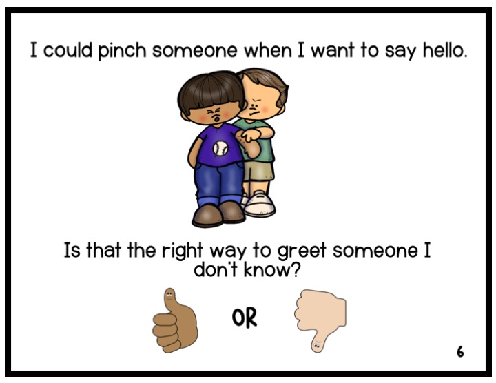 Greetings are your first impression when you first meet someone so we want students to understand what is appropriate and what is inappropriate so that they can greet others correctly without making someone feel uncomfortable.